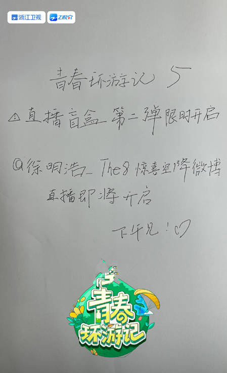 您以为这就是全部了吗?《青春环游记5》在后续的徐明浩直播宣传当中,依旧用这种丑陋的手写体内容,潦草地打发观众。按理说,略有审美,这种海报就不能让它过啊。浙江卫视《青春环游记》的这份神操作,真的是让人猜不透了。这是打算破罐子破摔吗?还是制作海报的老师们辞职了,没人做海报了呢?(文/马庆云)
