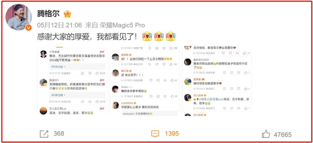 64岁的腾格尔回应网友:我都看见了