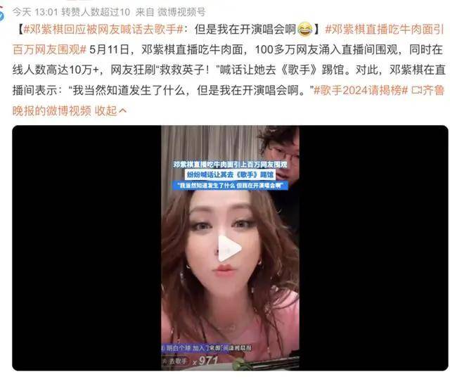邓紫棋下了演唱会直接开直播,弹幕都在cue她“救救那英”,本人回应:“知道发生了什么,但是我在开演唱会!”