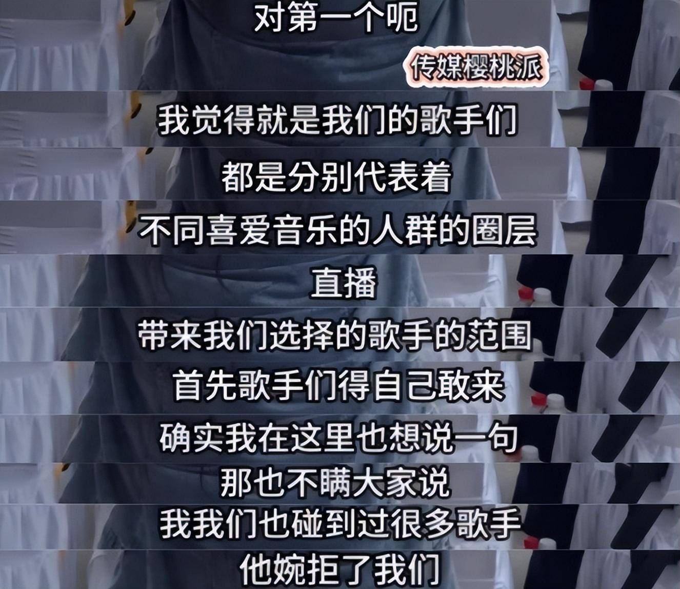 哪怕是顶级音综团队,节目监制洪啸接受樱桃的采访时都感慨,原本可邀约的人就少,一听要是直播one take,纷纷婉拒的更有一堆。