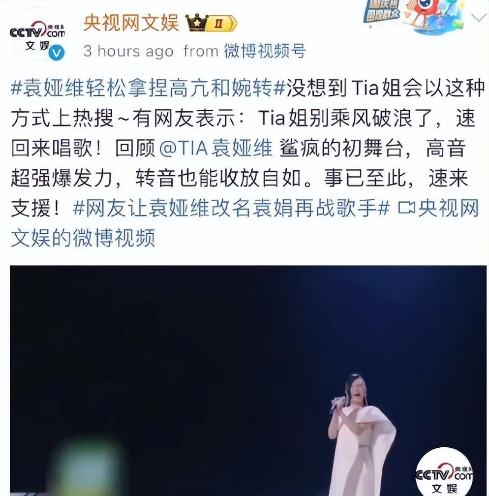 央视网文娱都隔空喊话袁娅维从“浪姐”请假来支援。
