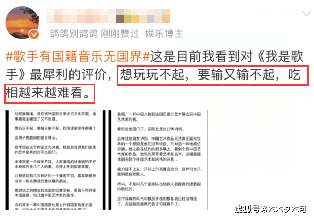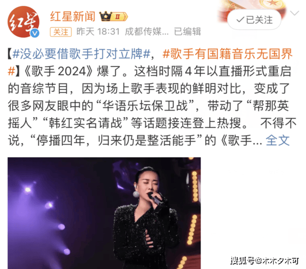 说白了,不过是一档综艺节目而已,上升到过高的层面,就扯远了,《歌手》这波营销属实过头了,既然是音综,那就首先应该让音乐回归音乐,音乐才是交流的最大公约数,在“竞技”之外的对立心态延伸,无疑是对跨文化交流价值的误解。