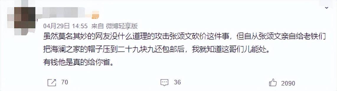 虽然李佳琦只会问你“79块钱哪里贵了”,但是张颂文却在代言海澜之家后,把一款帽子压价到29.9元,这其中孰优孰劣已经不言自明了。
