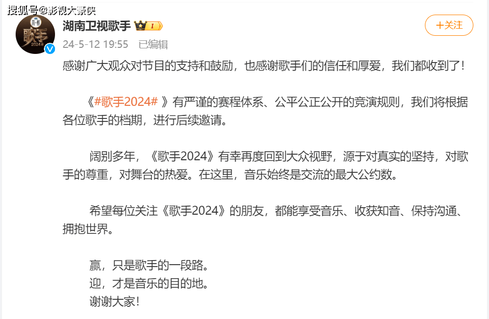 对此,湖南卫视歌手 对此进行回应,称将根据各位歌手的档期,进行后续邀请。