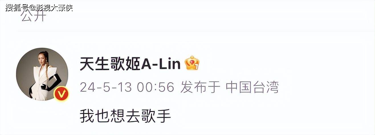 5月13日凌晨,歌手黄丽玲(A-Lin)发文:我也想去歌手,相关话题冲上热搜第一。