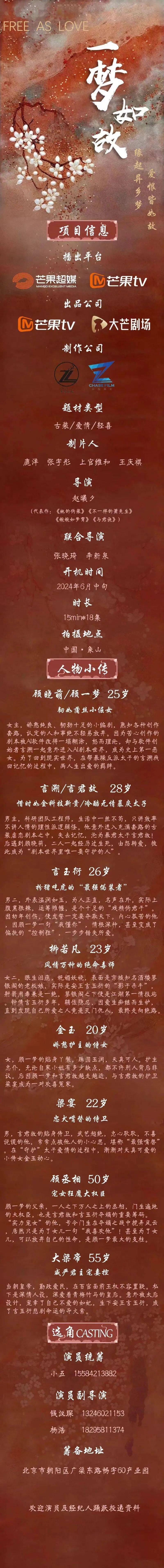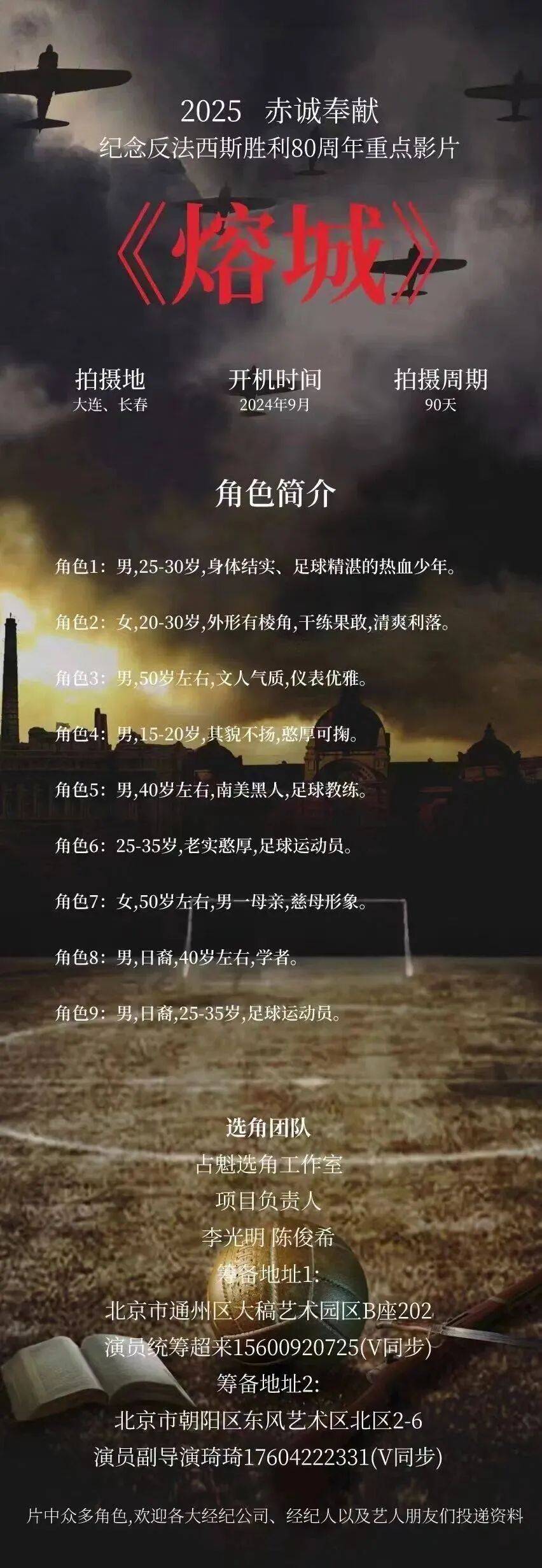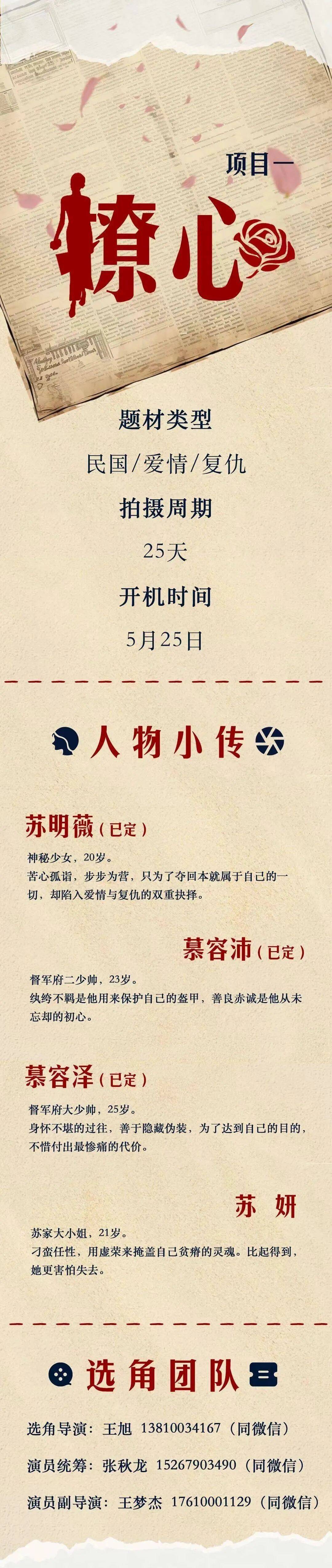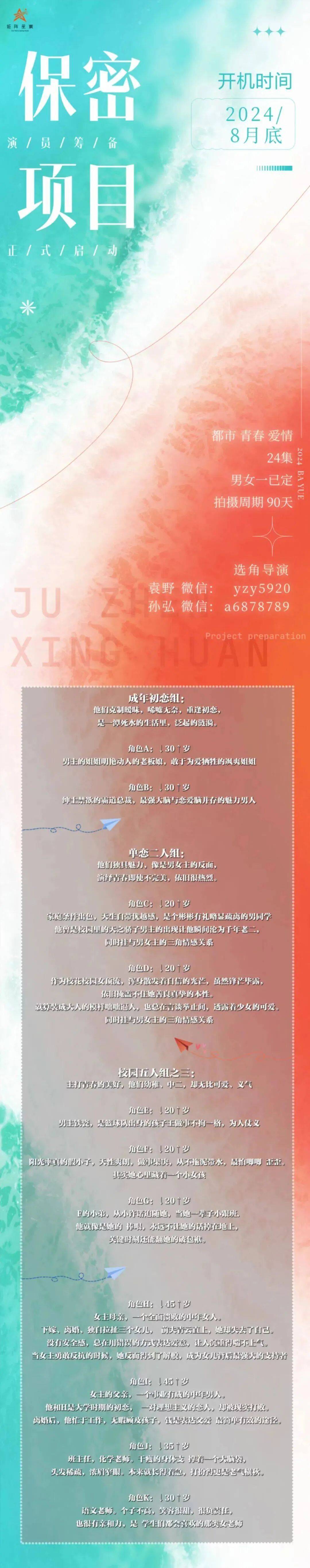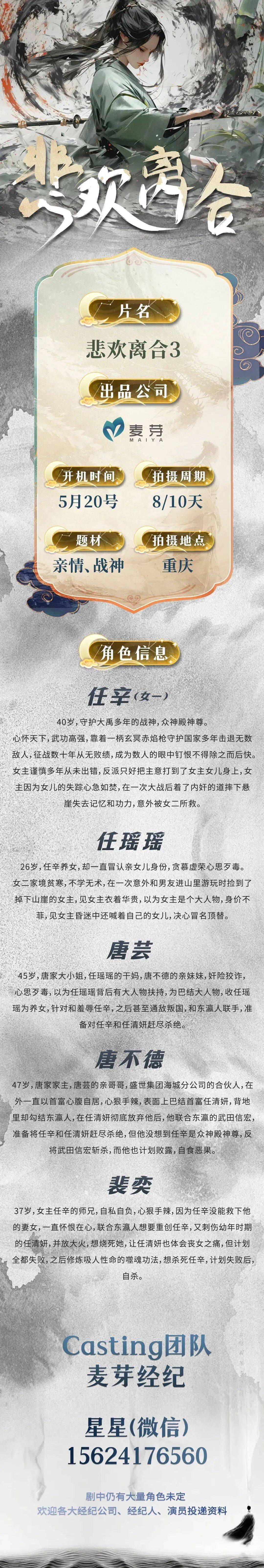 片中众多角色,欢迎各大经纪公司、经纪人以及艺人朋友们投递资料。