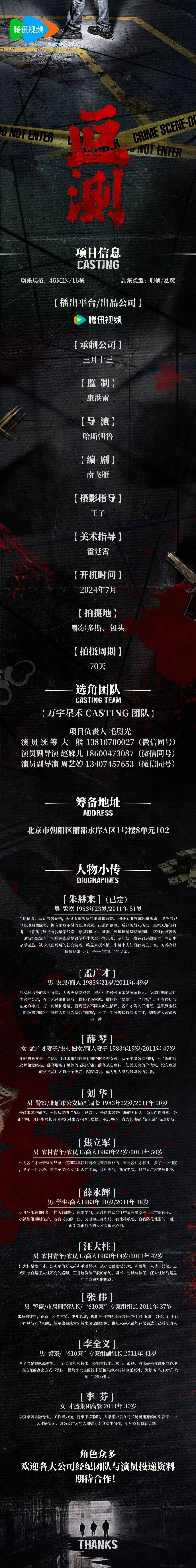 本栏目发布组讯由小编采集与业界共享,组讯如有变化请以实际情况为准。如果遇到剧组收费情况,请谨慎对待并私信官微@戏客Seeker,我们会公示问题组讯并及时处理。谢谢。