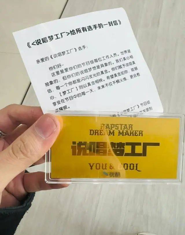 记者注意到,《说唱梦工厂》在浙江湖州首次录制时,有自媒体博主在网上晒出节目组赠送的金牌。据其晒出的图显示,金牌一旁还附有一张卡片,写着“世界是抽象的,但你们的说唱梦想是具象的……希望真金如你,能够享受在节目中的每一天”。