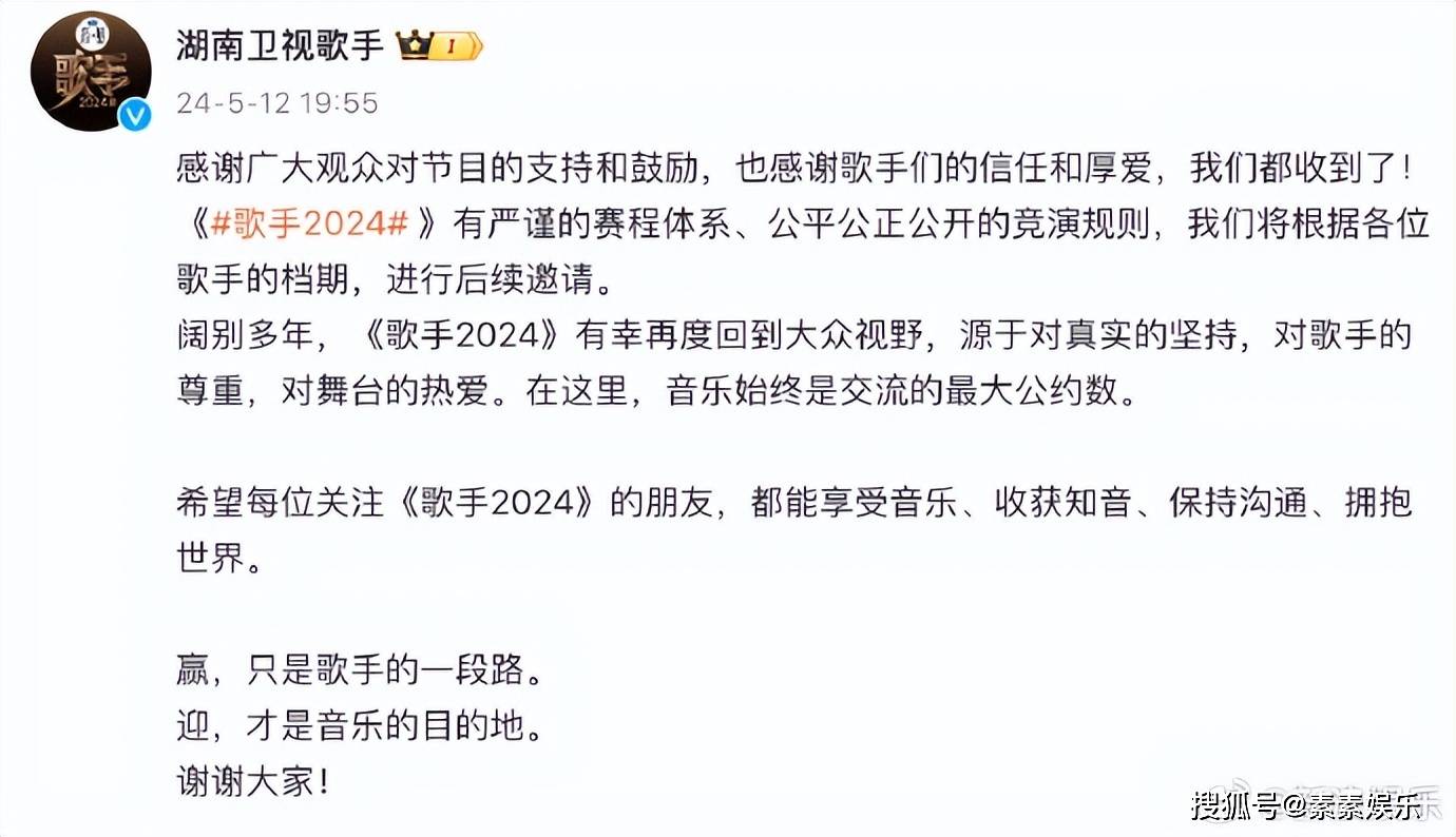 先来总结湖南台歌手2024的回应:将根据歌手档期进行后续邀请!