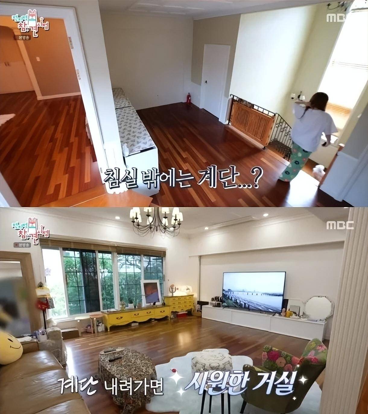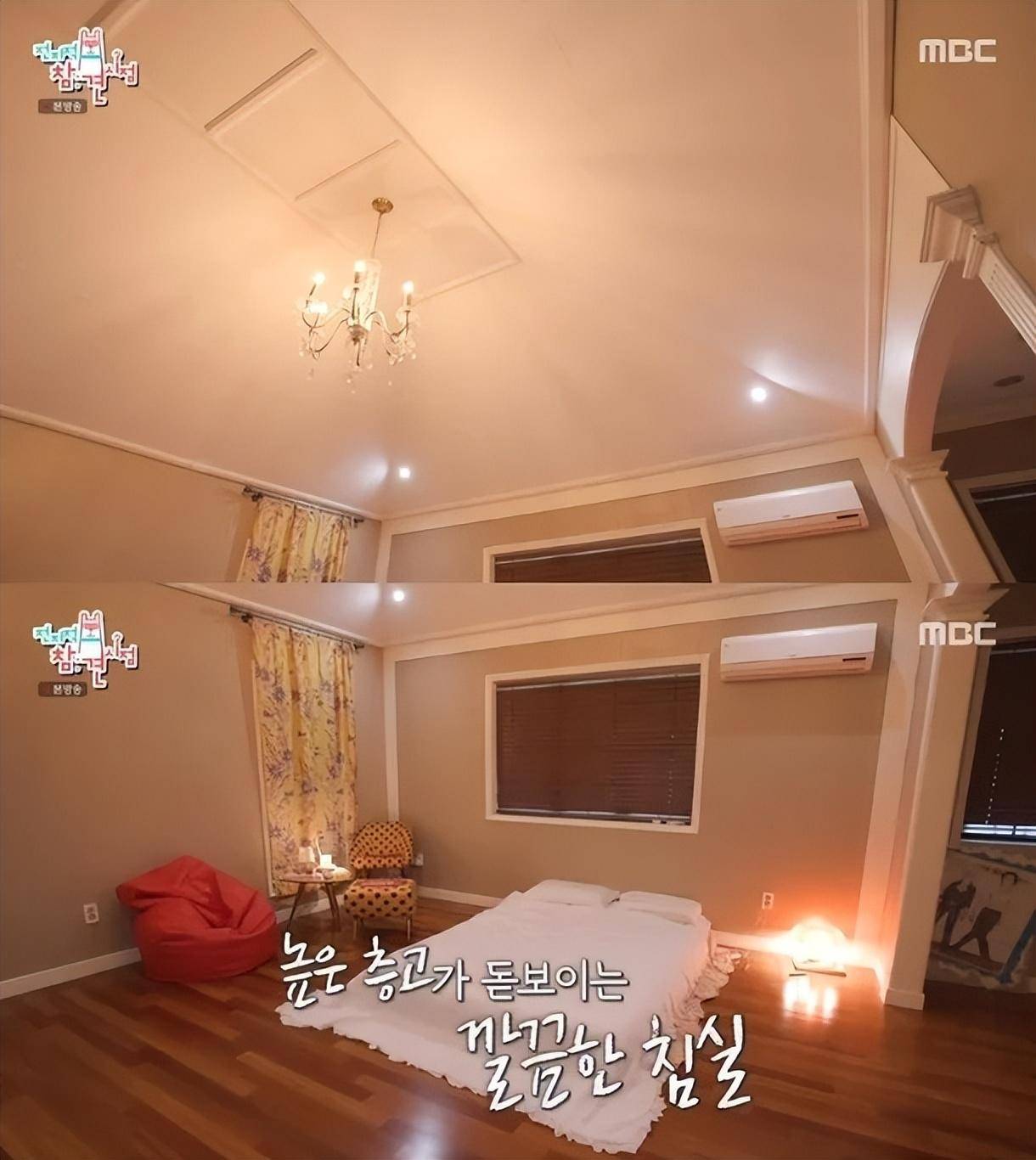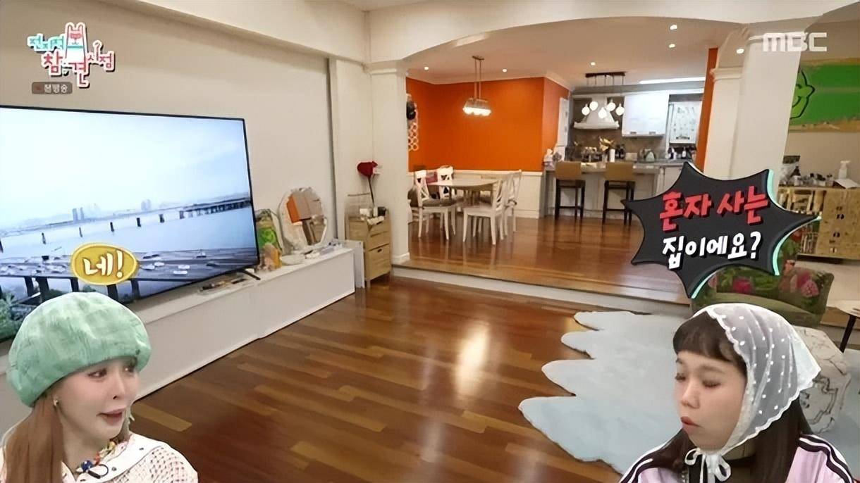 带有吊灯的卧室拥有很高的天花板,当你离开卧室走下楼梯时,你发现了一个凉爽的客厅,当洪贤熙问“你一个人住吗?”时,泫雅的回答是肯定的。