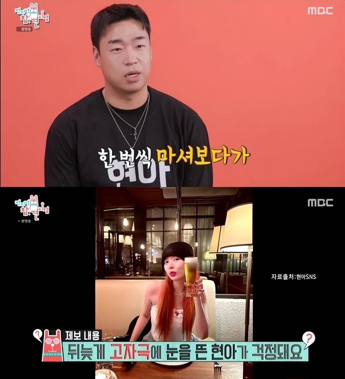 当天的节目中,泫雅的经纪人也爆料称,过去一年泫雅开始频繁喝汽水、酒精和能量饮料。对此,泫雅笑着说:“我是从别人那里学来的”,经纪人则说:“我很后悔,因为我认为她是在尝试了,我在车里买的东西后才学会的”。