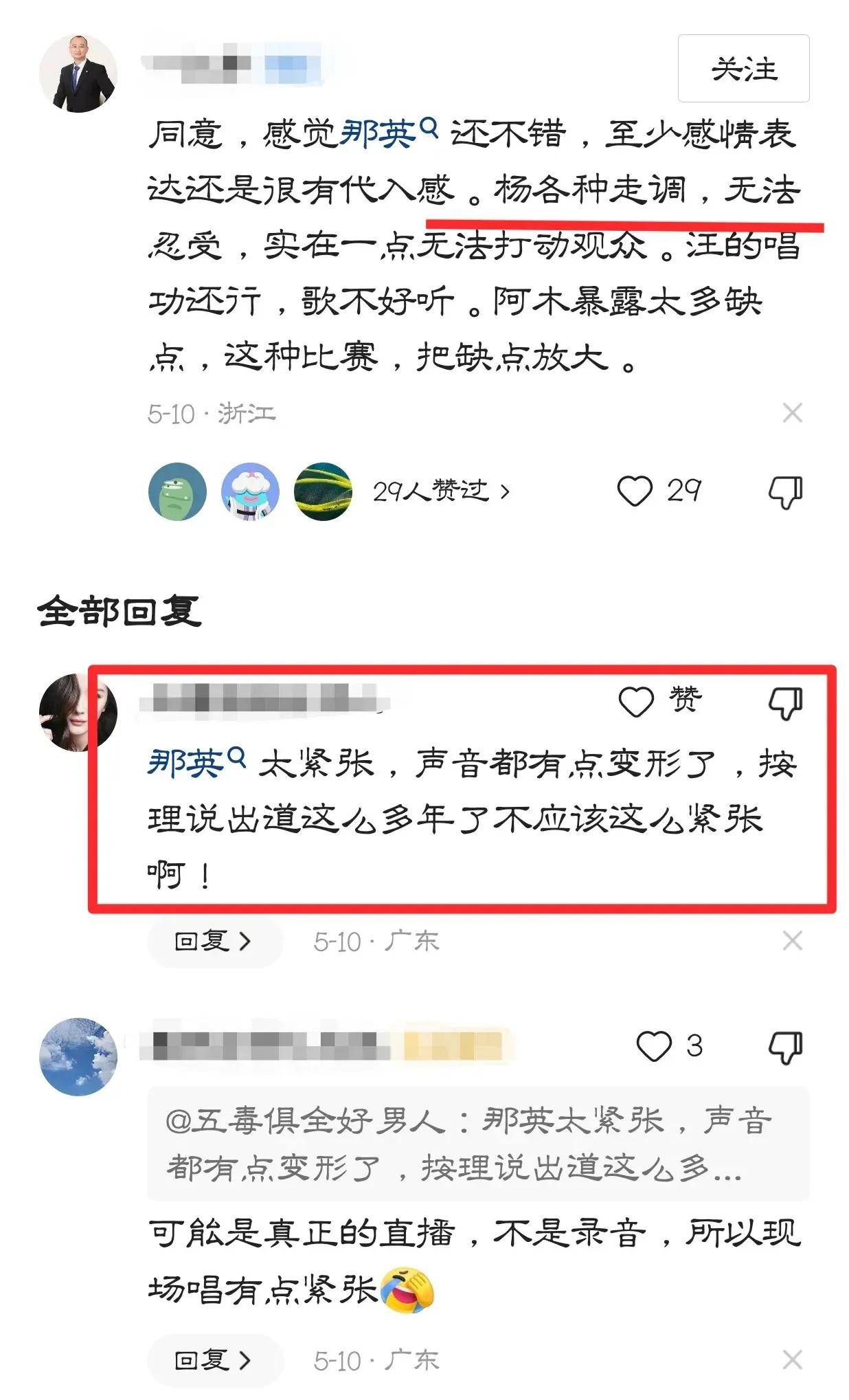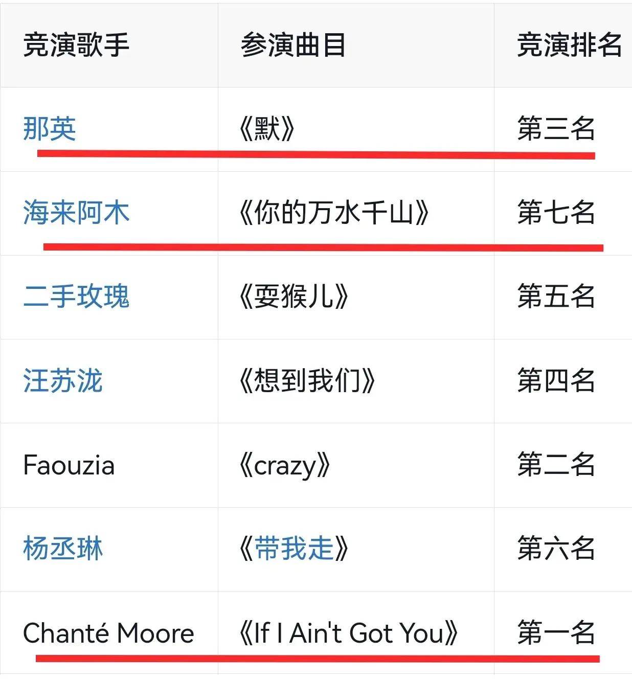 5月10日晚八点,第一场收场播出,那英排名第三,海来阿木垫底。