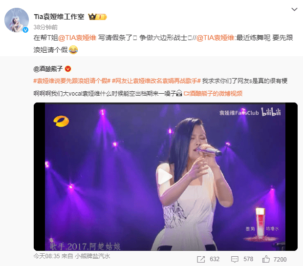 袁娅维工作室甚至都说已经在找浪姐请假了。