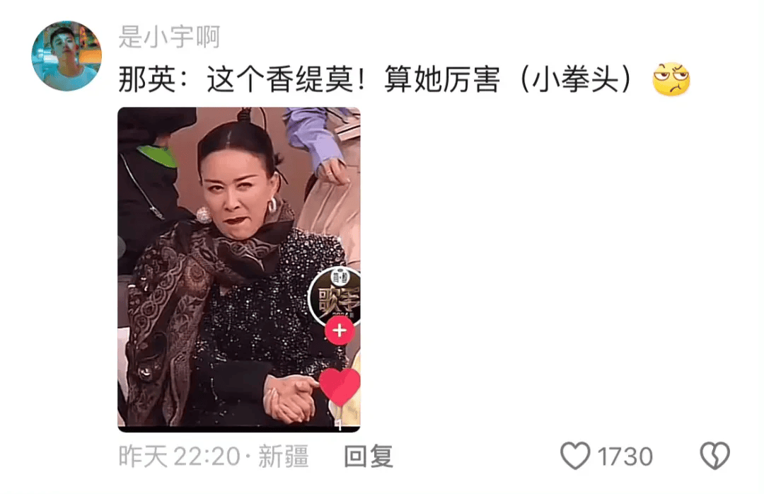 而且,那姐是本次《歌手2024》截止目前给大家唯一带来欢乐的人,让我们感恩那姐,还在内娱活跃