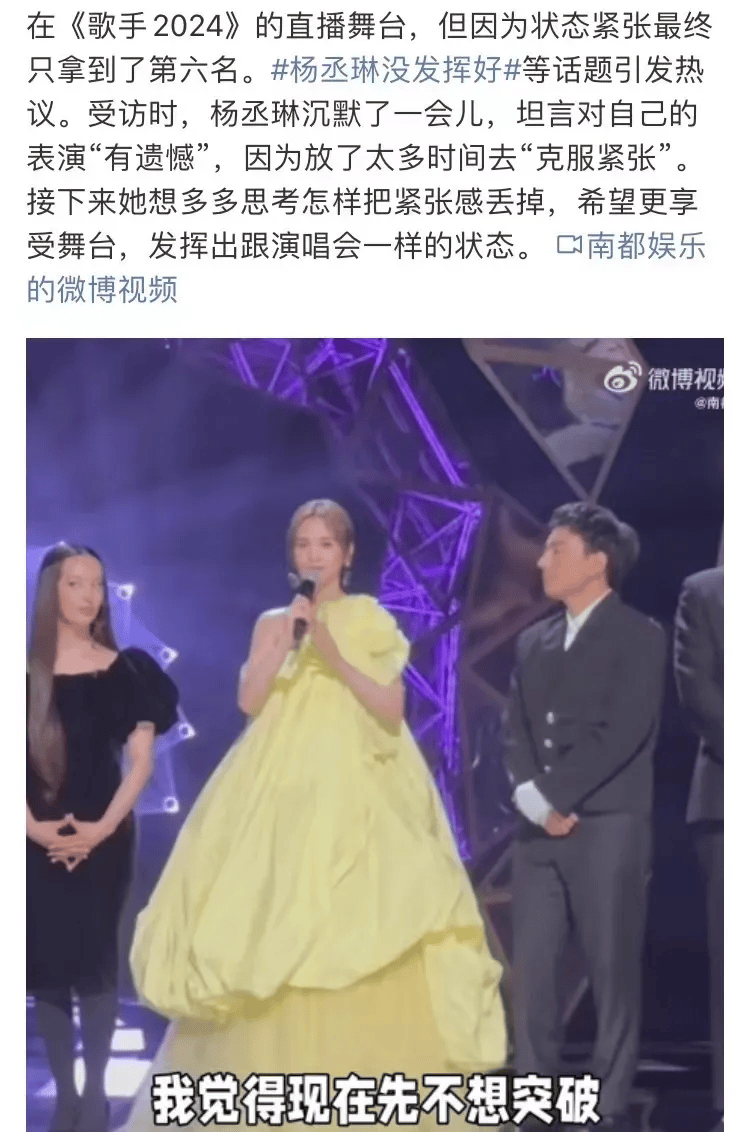就像这次的歌手舞台上,你不能说杨丞琳穿的淡黄的长裙不够美,也不能说汪苏泷直播唱新歌的态度不够认真,