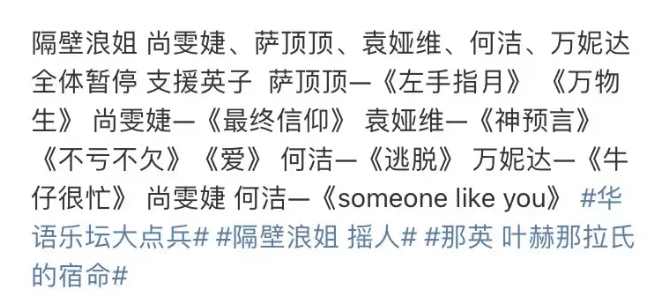 还有网友表示这里有现成的,隔壁浪姐的大vocal不是没有,袁娅维、尚雯婕、萨顶顶、何洁都可以!