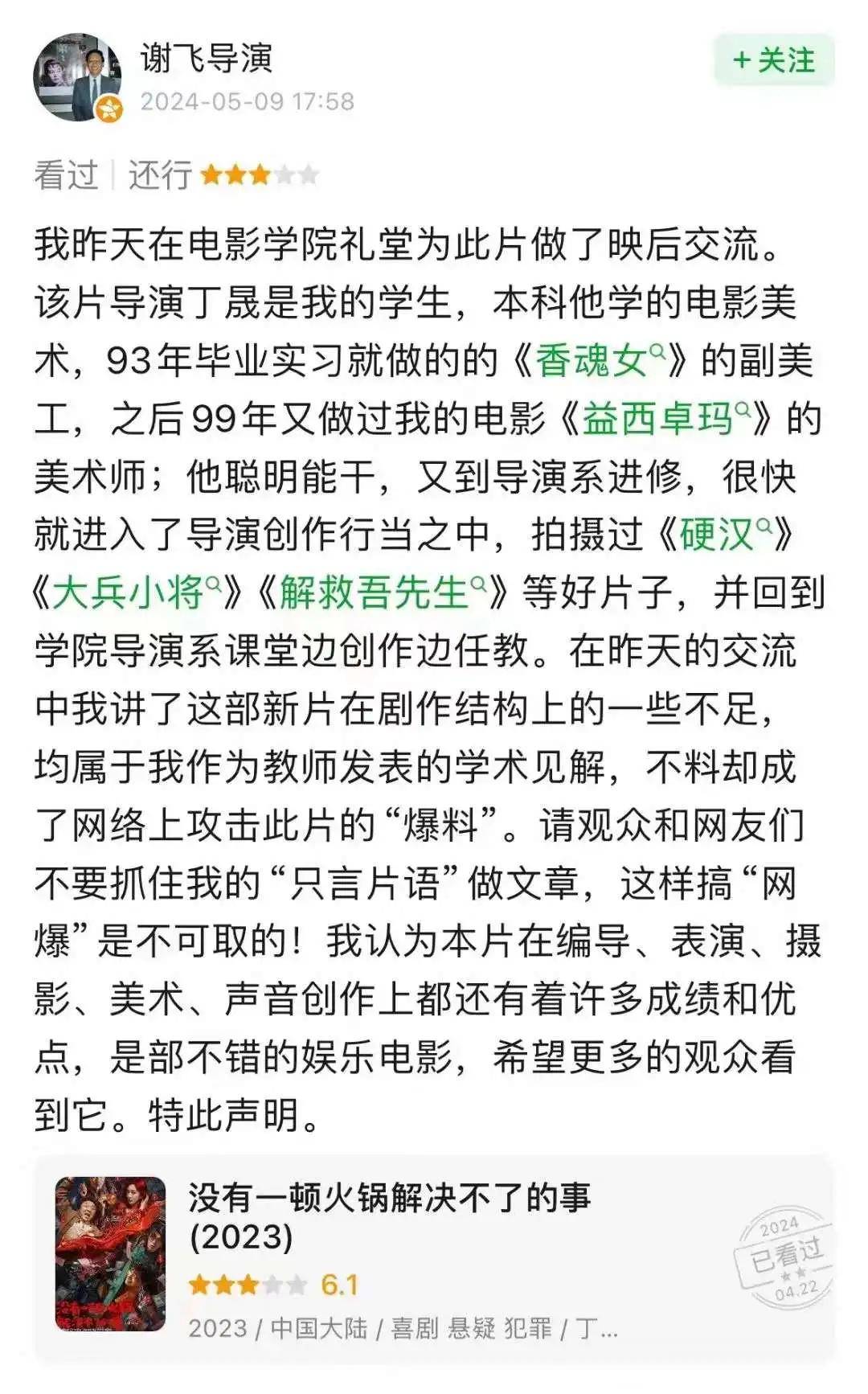 大家认同丁晟和谢飞导演的言论吗?大家如何看《火锅》的品质?欢迎留言讨论!