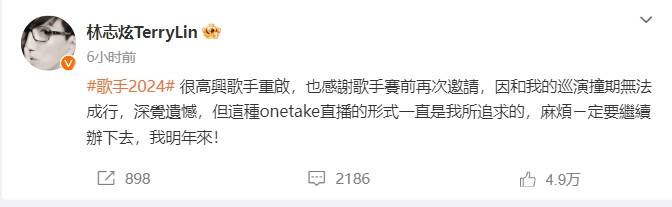 林志炫作为公认的实力唱将,之前在《披荆斩棘》中就已经小试牛刀,专业性令人印象深刻,而这次《歌手》重启,林志炫也表示确实邀请过他,但是因为节目录制时间与他的巡演撞档期了,所以不得已拒绝了。虽然今年无缘参加,但是表示明年原因加盟,相当真诚且很自信。