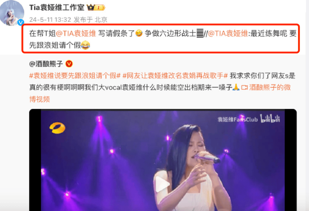 网友找到袁娅维,希望她能去参加《歌手》,袁娅维表示要先跟《浪姐》请个假。