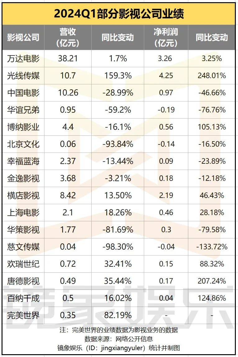 原标题:2024影视公司一季报:万达38亿领跑、光线净利大涨248%、剧集公司整体欠佳