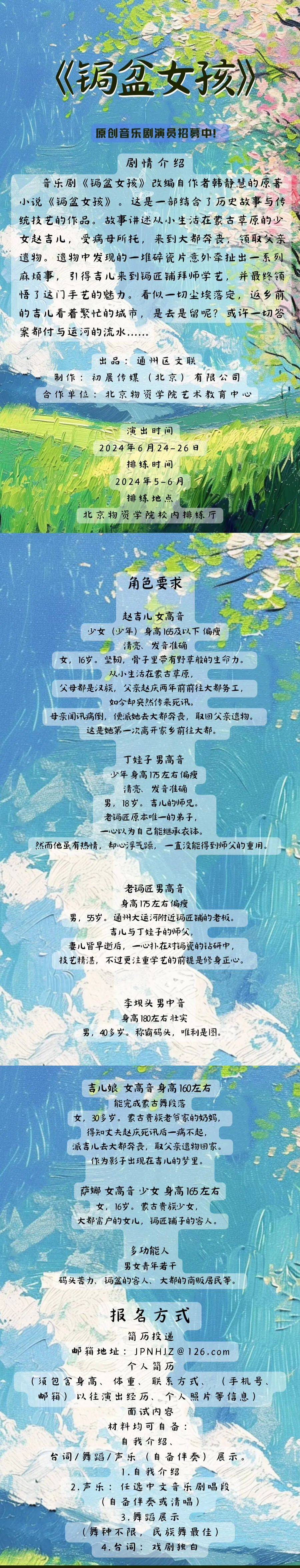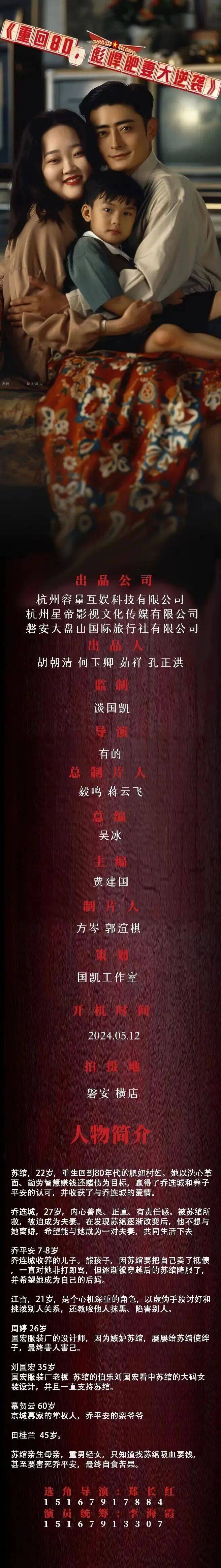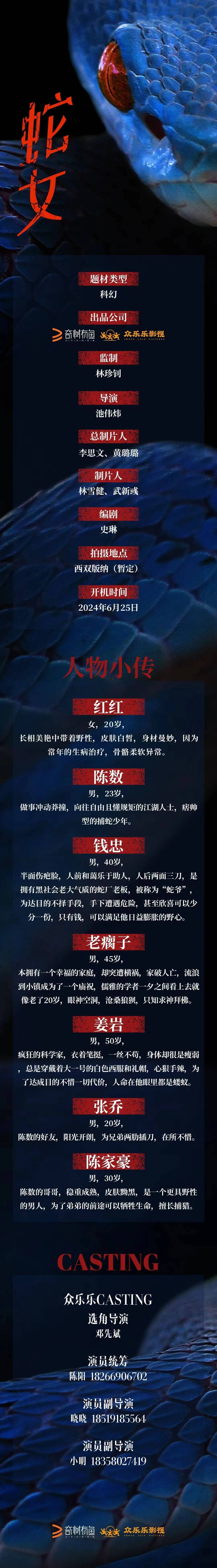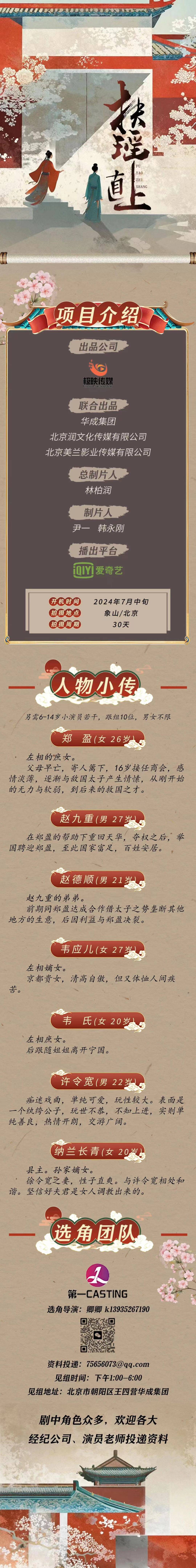 剧中角色众多,欢迎各大经纪公司、演员老师投递资料