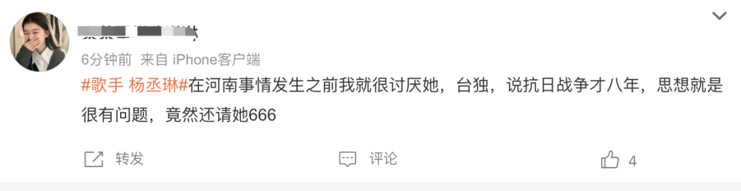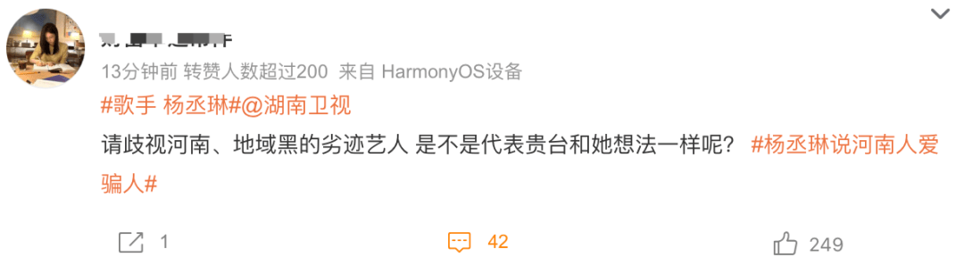 “我是河南人,我没办法原谅杨丞琳。”
