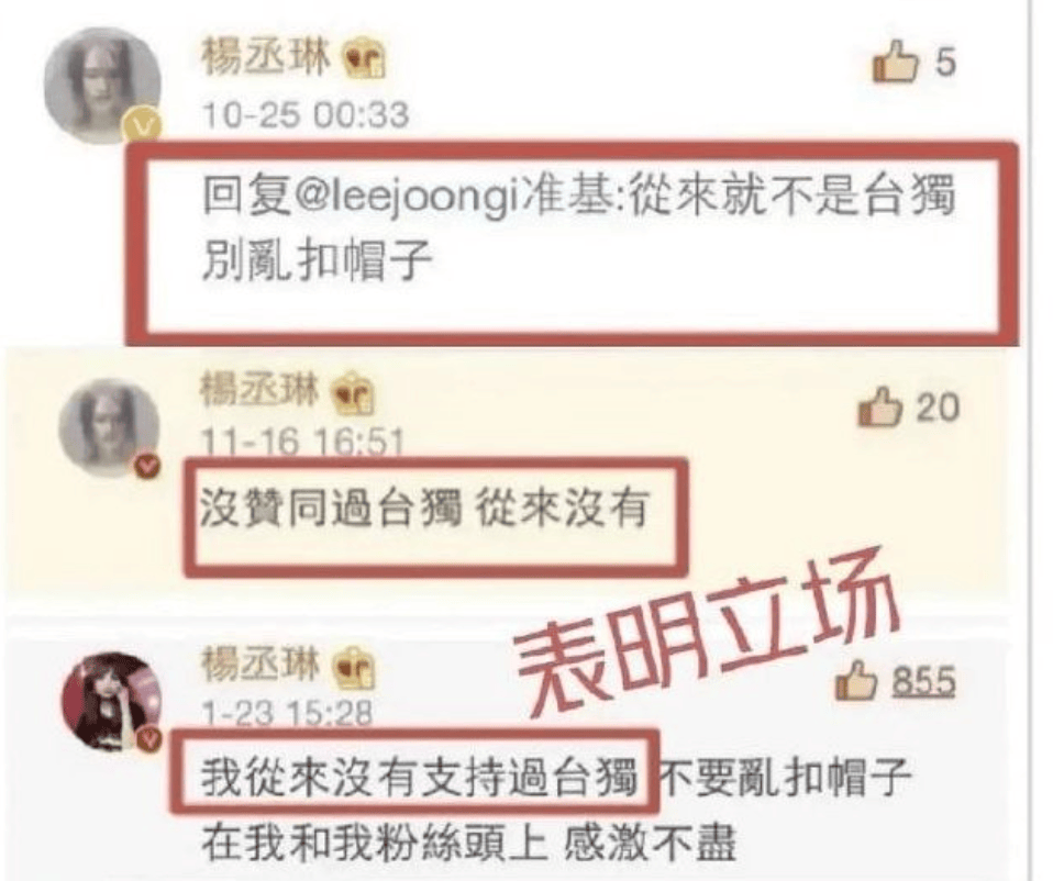 另外,杨丞琳曾多次发微博祝福祖国,在各种事件点上,也都明确表达了自己的立场。