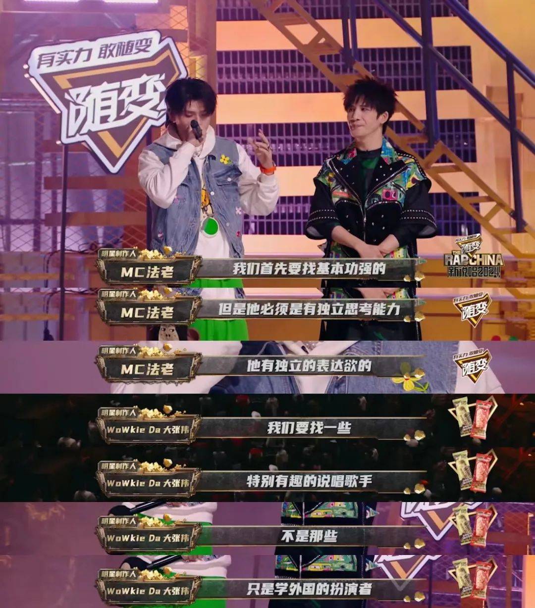 具体而言,新一季节目中,四组导师在构思自身的选人标准上,都试着去挖掘一些新的、让人眼前一亮的音乐。特别是大张伟和法老这一组,他们在要求Flow、押韵、叙事能力、音乐性这些基本的业务能力的基础上,明确将有趣作为一个核心的选人标准,希望说唱音乐能给更多人带去快乐。