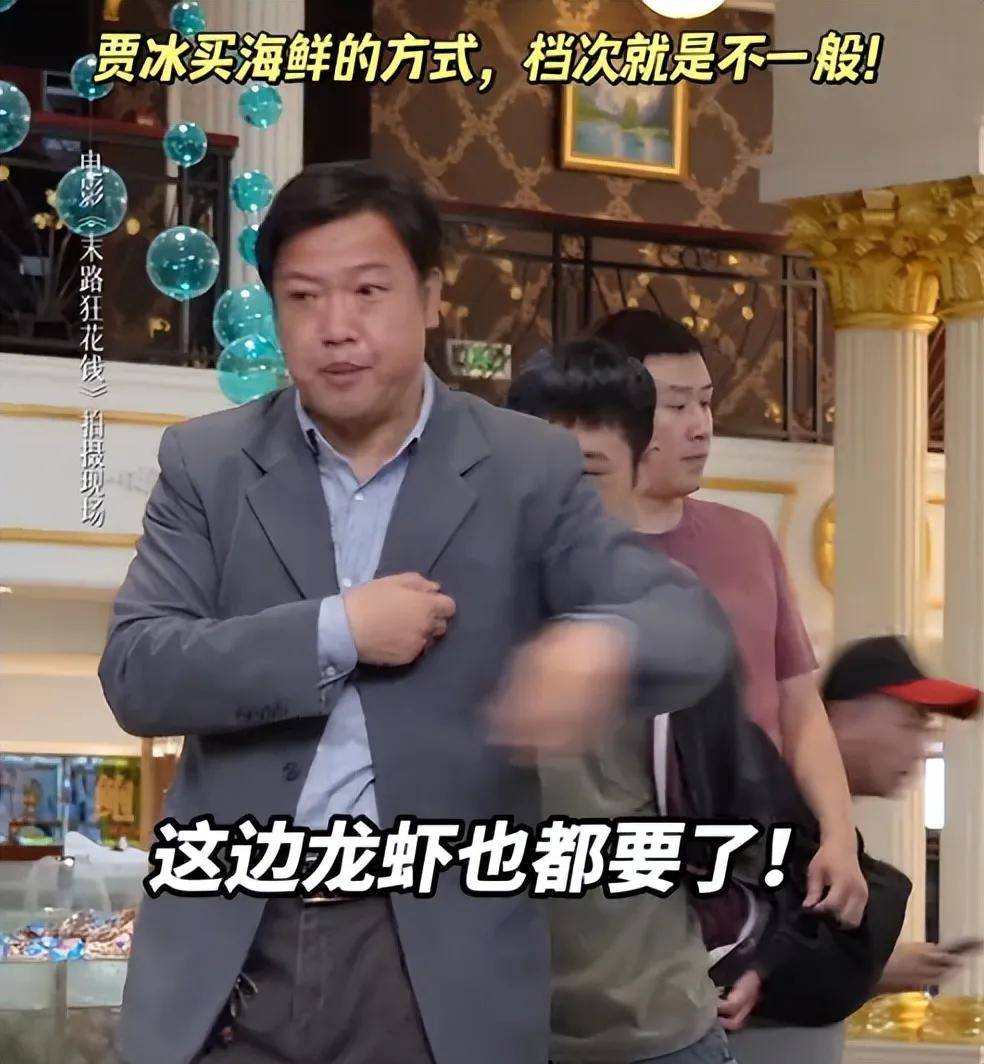 背头花领小西裤,一句“什么档次跟我用一样的电视”,让贾冰火出了圈,他也终于有了在电影里展现自己喜剧才华的机会。