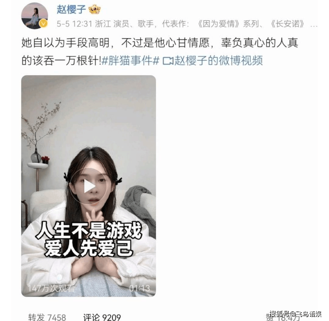 原标题:赵樱子为胖猫发声!被吐槽蹭流量!不愧是蹭过迪幂孟扎的人