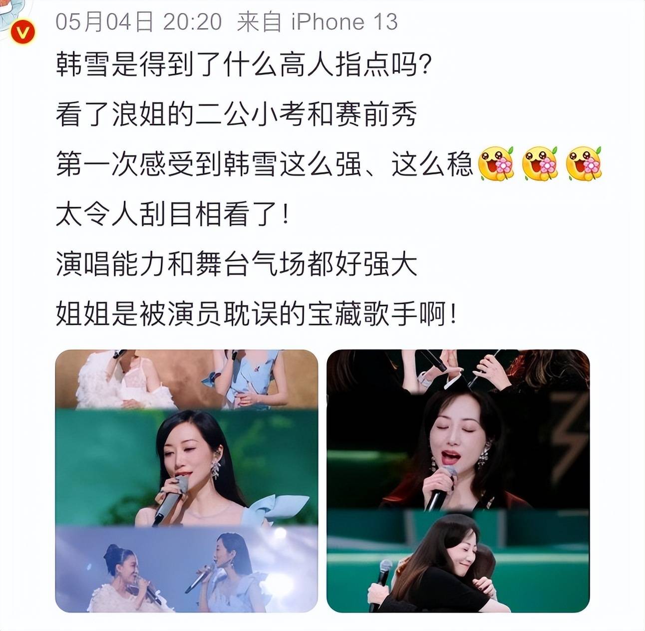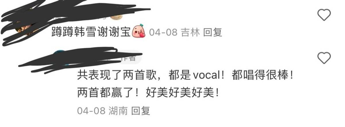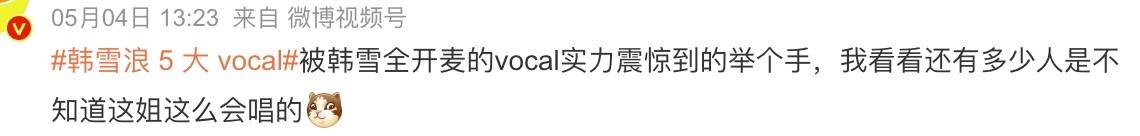 以及当天就冲上热搜的“韩雪vocal”词条,可见,她的实力。