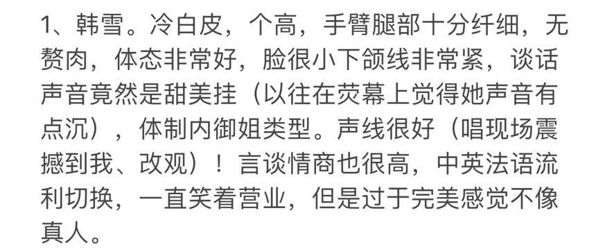 群众的眼睛是雪亮的,能有这么多现场观众给出几乎一致的评价,就足以证明韩雪的能力。