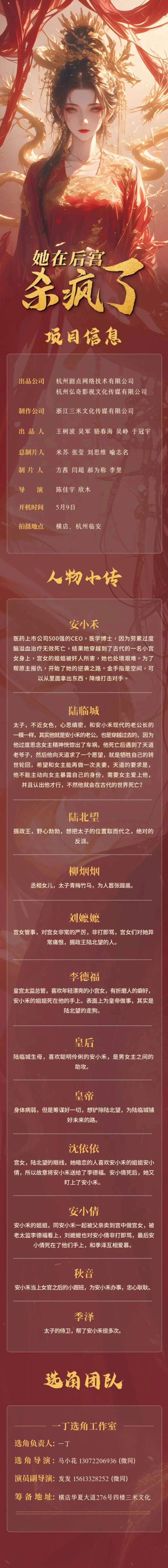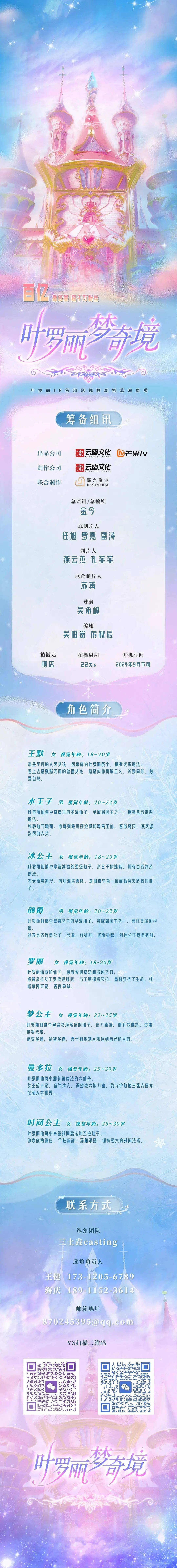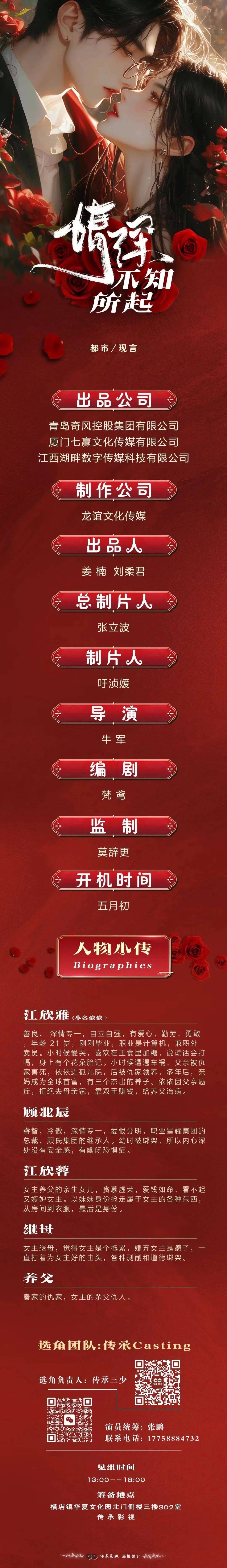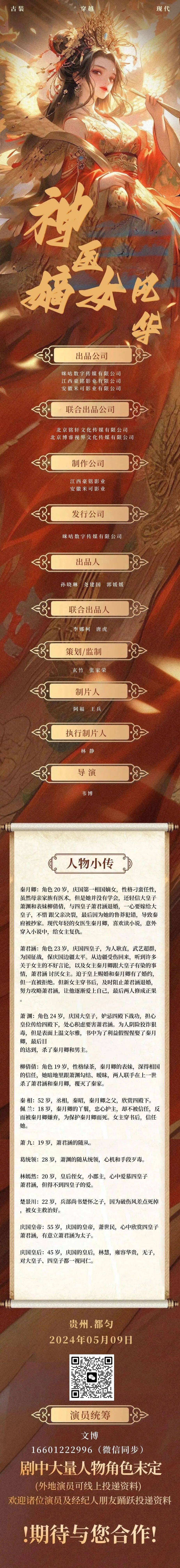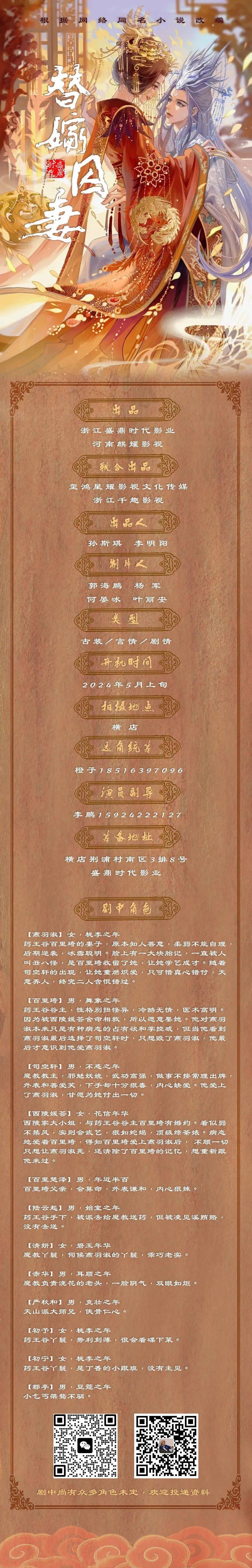 剧中大量角色未定,欢迎各大演员及经纪人老师们投递资料,期待合作。
