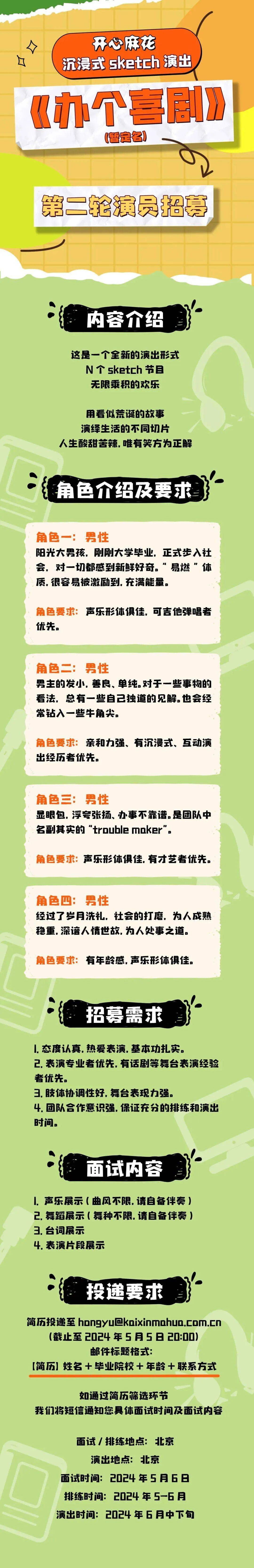 开心麻花沉浸式sketch演出第二轮演员招募