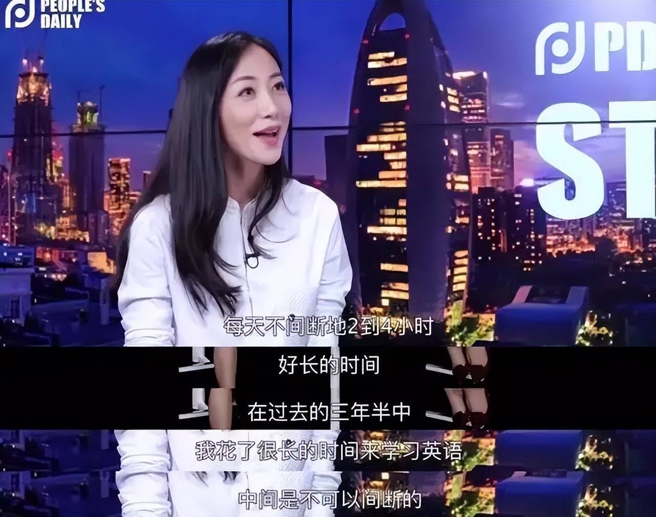 在2018年接受人民日报的PD stduio全英文专访中,韩雪称她每天要花费2-4小时学习英语,持续性地学习了3年半。