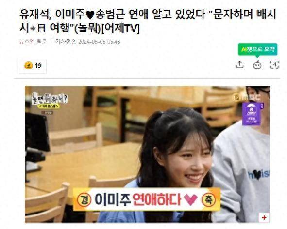 韩国知名艺人,刘在石姗姗来迟地透露,他早就已经注意到了李美珠的感情生活。