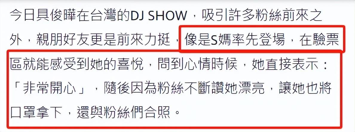 S妈都到场支持女婿,但也贡献了尴尬采访,有人问她喜欢听具俊晔唱什么歌,她一首也说不出来,只说她是来看具俊晔跳舞的。S妈和小S家还给具俊晔送了花篮,给足排面。
