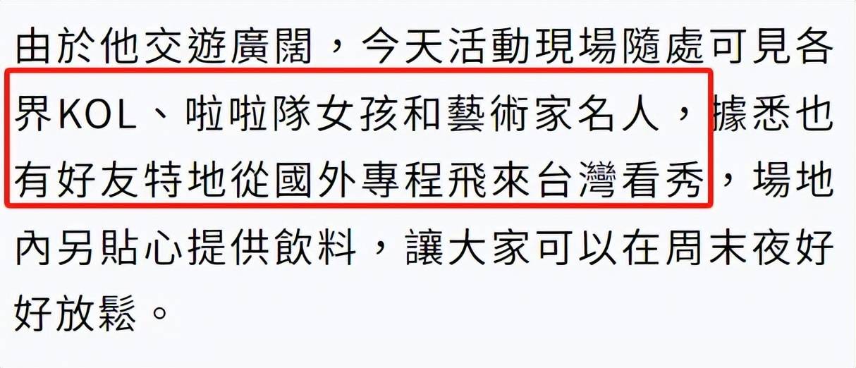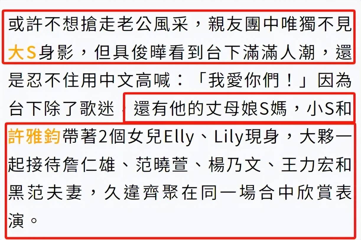 而台媒也是一如既往非常有趣,称现场有不少台娱圈的艺人力挺,包括范玮琪和老公黑人,还有王力宏、詹仁雄等人到场支持,但是王力宏当晚在成都开演唱会呢,不知道台媒哪里来的信息说他去支持了?灵魂出窍去的吗?