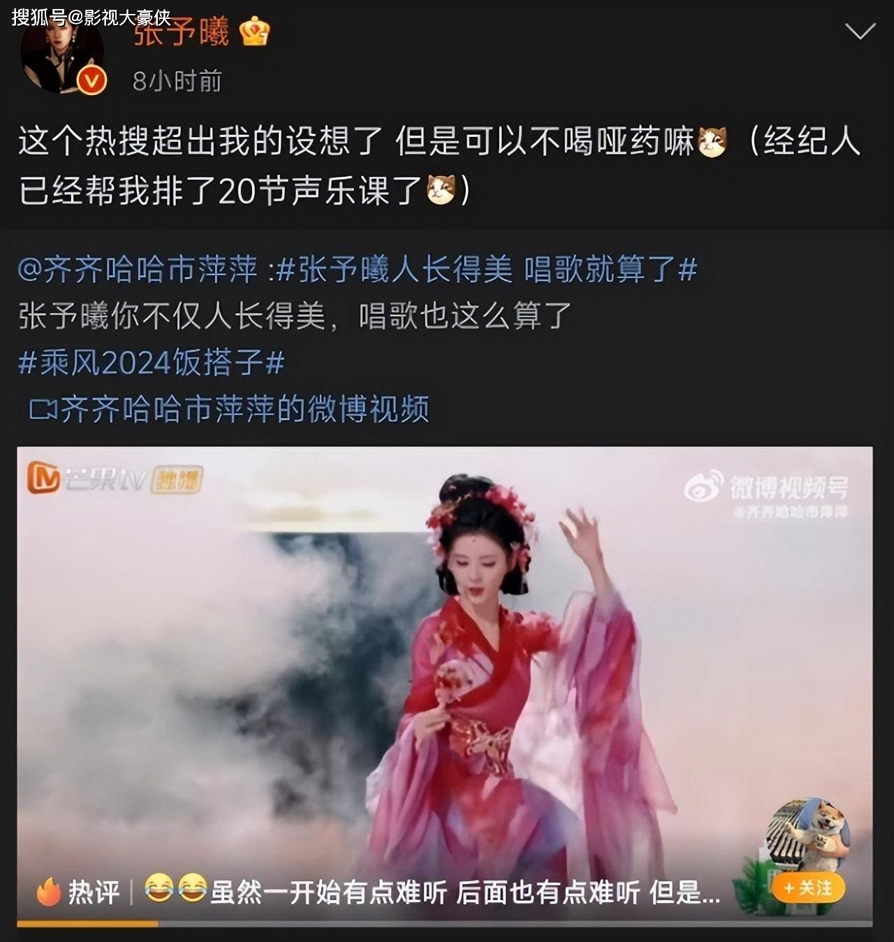 张予曦选择的是网络歌曲《红昭愿》,原唱声音清脆甜美,但她却偏偏是个乌鸦嗓,一开口,满屏的弹幕都是“哈哈哈哈”。