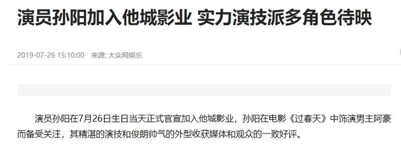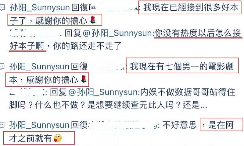 此前,有粉丝担心孙阳不营业、不做数据,会因为热度流失接不到戏时,他曾解释称自己手上有很多好本子,而且都是电影男一。