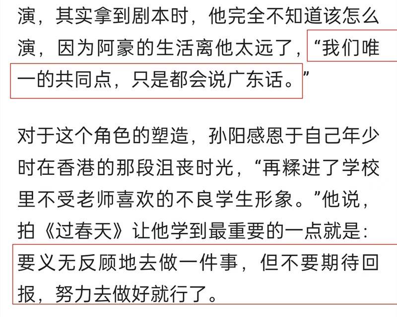 虽然也有人觉得,阿豪这个角色对于孙阳来说是“本色出演”。但事实是,除了会说广东话之外,两人再没有相同的地方。