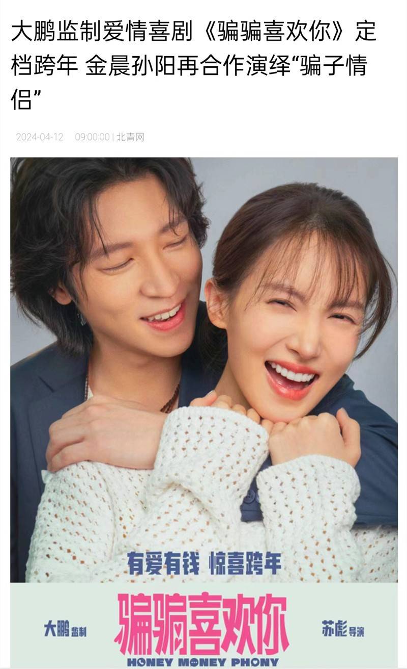 开机半个月,就已经定好档期。由孙阳、金晨主演的爱情喜剧《骗骗喜欢你》预计新年上映,借此给观众送上“有爱有钱”的祝福。