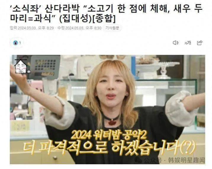 当姜大声试图将虾放在盘子上时,朴山多拉说,你不必给超过两只虾,那是因为我吃得太多了。她透露吃两只虾,或者一小块牛肉,对自己来说,就属于暴饮暴食了。