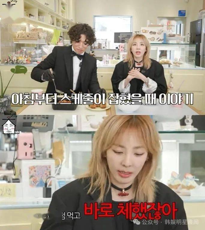 因所谓的“小鸟胃”而闻名的朴山多拉承认,她仍然觉得传播有关饮食的内容很困难。朴山多拉特别回忆起早上的行程,有一次我们要在早上七点拍戏,我问是否包括食物,结果我刚吃了一小块牛肉,就觉得不舒服了。姜大声说,和我完全相反,我早上吃得最多,对此朴山多拉补充道,在YG期间,酒店早餐餐厅只有大声和太阳。