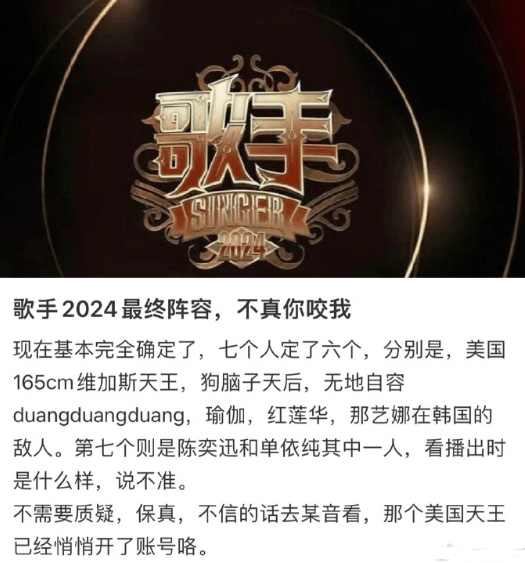 原标题:歌手2024:芒果台画的饼越来越大,网传和自荐都是一场笑话!