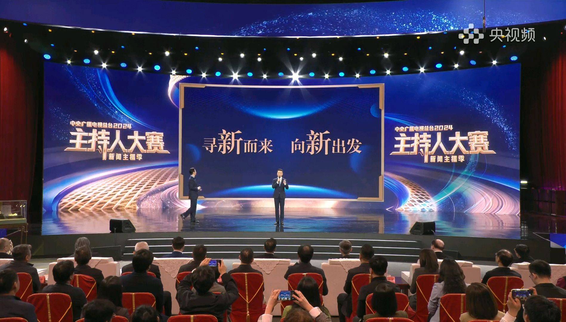 代表剧组推荐2024央视主持人大赛新闻主播季的,是央视新闻主播康辉。他还有另外两个身份,一个是新闻中心播音组主任,还有一个是主持人大赛点评嘉宾。康辉介绍,2024央视主持人大赛的口号是“寻新而来 向新出发”,两个“新”字代表两种不同的意思。前者是新人,后者是新样态,选拔年轻的新生代新闻主播,开启新的播音生涯。