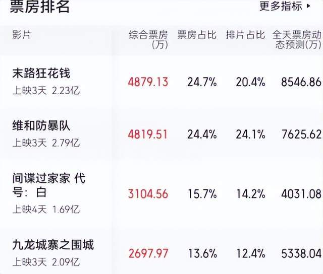 相比投资更大的《维和防暴队》和口碑更好的《九龙城寨》,《末路狂花钱》怎么看,都没有冠军的“排面”。