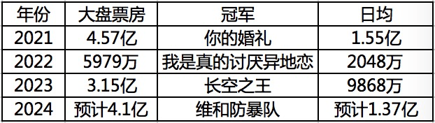 从往年数据来看,2021年确实是一个高峰,在全年各个档期均有一定的突破。五一档《你的婚礼》首日竟然狂砍1.55亿的惊人体量。去年的《长空之王》同样也有着单日近1亿的票房成绩,都是支撑五一档的强有力种子。而今年的《维和防暴队》同样不遑多让,首日斩获1.4亿的成绩。