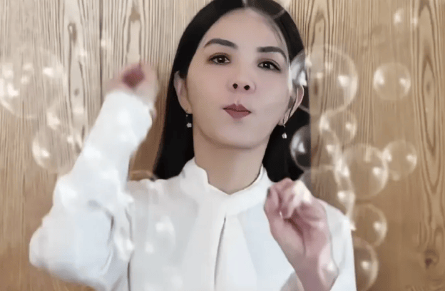 视频中,Ella看起来非常开心,一边想笑一边又表现出非常严肃的样子。