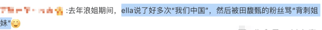 此操作一出,网友们开始各种吐槽Ella背刺姐妹,玩心机那一套...